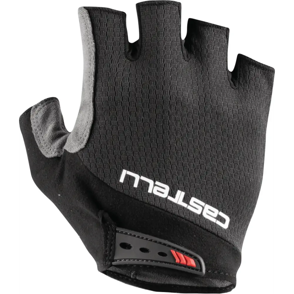 The mesh back of hand and perforated premium AX Suede synthetic palm make this glove extremely comfortable. We gave it medium-density foam through the palm to satisfy riders who don't want a bulky glove, but we kept the Castelli Damping System median nerve padding. It features a microsuede nose wipe over the thumb, and the Velcro closure makes it easy to get on and off.