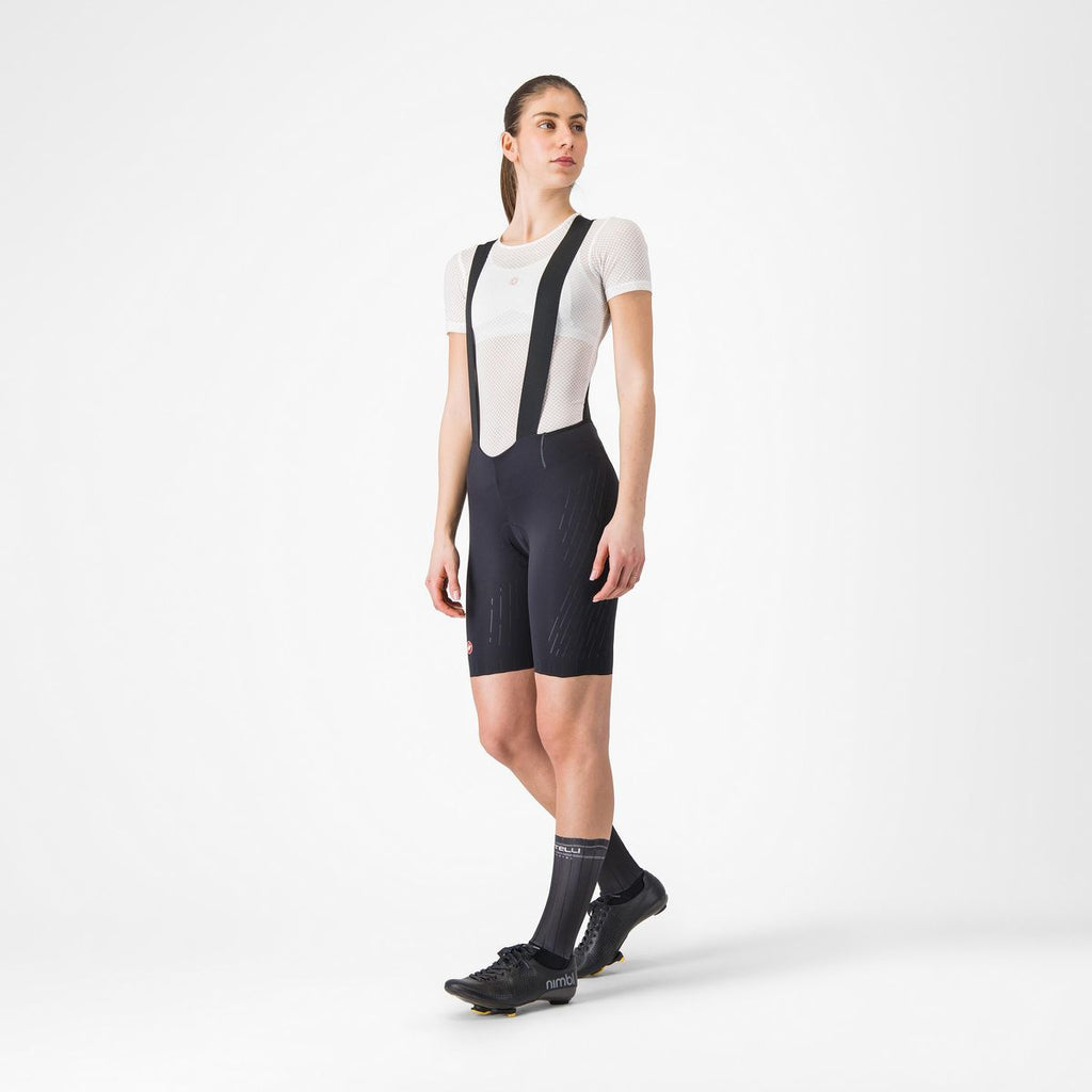 From your local training route to the world's toughest bike races, the Free Aero Race S W Bibshort was developed to meet the demands of the performance cyclist. When you swing a leg over a bike, the first thing you want out of your bibshorts is comfort. The Forza2 Stretch fabric molds to the body without constriction, allowing the fabric to move with every pedal stroke. The bib straps are kept lightweight and minimal while still being supportive, stretchy, and breathable to maintain a high level of comfort. The silicone grippers at the leg endings keep the short in place right where you want it. And, of course, we've used our Progetto X2 Air Seamless Donna seat pad so you can stay comfortable even on the longest training days. In the modern world of performance cycling, aerodynamics has quickly become one of the most important components. After countless hours in the wind tunnel, we've aero optimized the bibshort to give you a 3% decrease in CdA, making it the fastest Free Aero Race Bibshort we've ever created. This means every watt you produce can be used to make you go forward faster.