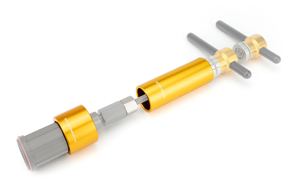 This kit expands upon the functionality of the BRT-060 and BRT-222/100 bearing tools to allow for the controlled removal of bearings by utilizing a blind-puller and the bearing press against itself to pull the bearing from the component (hub). This is ideal for pulling bearings from freehubs and hubs that utilize bearing spacers instead of axle stops.