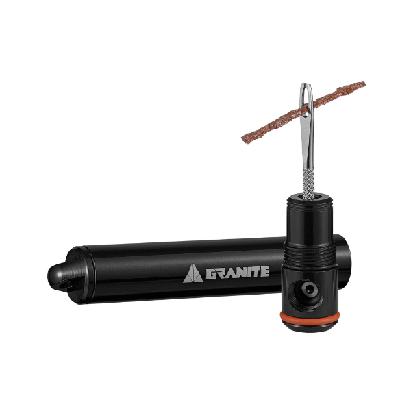 The Granite Suture Aero Tire Plug Kit is designed for seamless tire repairs and inflation. Combining the original Suture with a built-in CO2 inflator, ensures quick puncture fixes and fast reinflation.