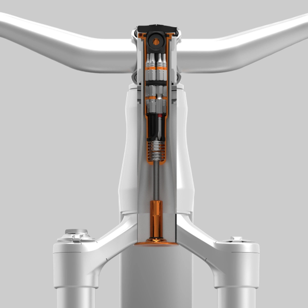 The new compact housing fits modern forks with a tapered steerer tube, e.g. Rockshox Lyrik and Pike, Fox 38 and 36 series.