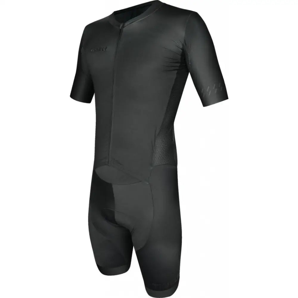 High quality 2-in-1 cycling speedsuit with aerodynamic textured waffle fabric and Pro Aero style collar.