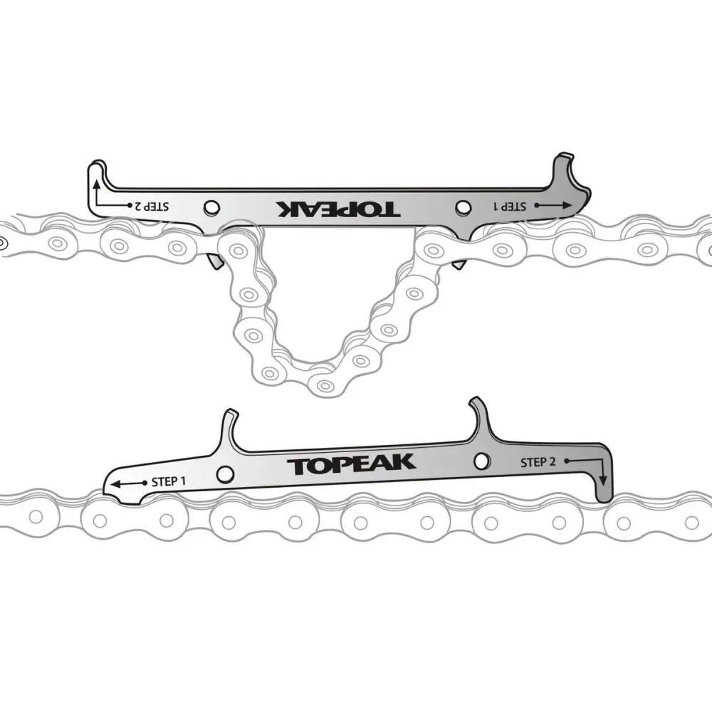 Integrated chain hook holds links during assembly and chain wear indicator provides precise chain measurement for maintenance.