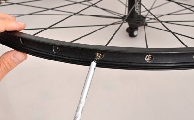 The Unior nipple assembly tool is your best friend when building wheels. It’s firm spring enables you, to simply attached the nipple and screw it through a double wall rim on the spoke. This way, you avoid losing nipples between the walls of the rim.